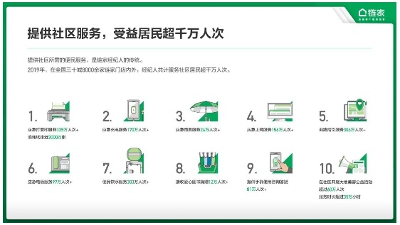 近日,房產服務行業的領頭羊鏈家發布了《新經紀新價值——2019年鏈家經紀人數據報告》。報告顯示,2019年,在全國三十城8000余家鏈家門店內外,經紀人共計服務社區居民超千萬人次。