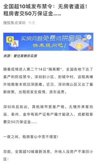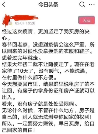 今年的疫情之下,各個城市都出現了“無房者遣返”的極端事件。