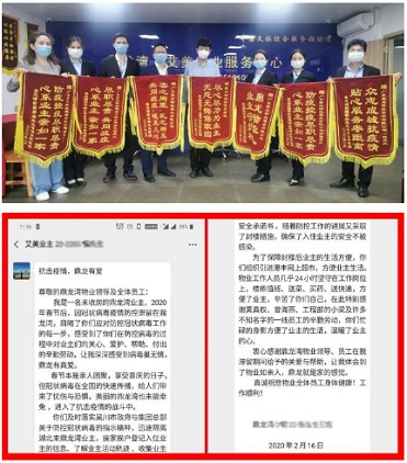 住戶贈予鼎龍灣物業的感謝錦旗及感謝信