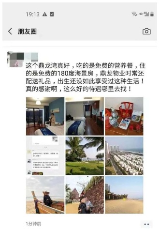 被醫學隔離客戶感謝鼎龍物業的朋友圈截圖