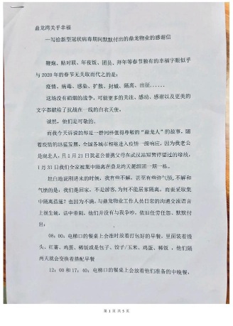 以下摘自被醫學隔離的鼎龍灣三期【艾美組團】三棟業主楊女士寫給新型冠狀病毒期間默默付出的鼎龍物業的感謝信:
