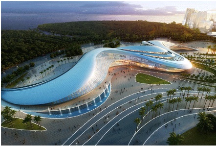 有幾個比較代表性的項目,比如海南的恒大海花島國際購物中心。提及海南,我們總會想到黎族、椰子、海風、陽光等元素,但是這個商業中心定位是國際免稅商業購物城,基于此,我們將其定位趨于簡約風雅,構筑成一個非常國際化的空間。