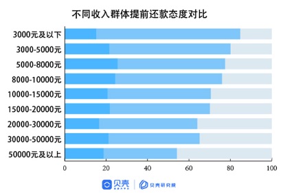 買房最讓人痛苦的除了湊首付,便是十幾年的還貸歷程。所以,很多人的心態(tài)是,房奴難避免,但少當(dāng)一天是一天。《報(bào)告》顯示,受訪者超半數(shù)以上愿意提前還款。低收入群體更多地選擇提前部分還款,而隨著收入水平的提高,愿意提前一次性還清房貸的比例顯著增加。