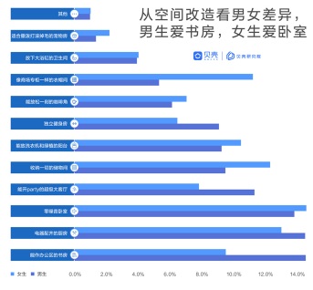 《報(bào)告》顯示,男生更在乎書房,女生更看重臥室。二者的改造都體現(xiàn)了對(duì)居室動(dòng)靜區(qū)設(shè)置的需求。眼下,不少人因?yàn)橐咔樵诩肄k公,小孩的追逐打鬧聲、父母輔導(dǎo)孩子作業(yè)時(shí)的歇斯底里、電視和音樂(lè)聲.....如果隔音效果不好,這種“聲聲入耳”的體驗(yàn)會(huì)讓人抓狂崩潰。但如果房子的動(dòng)靜區(qū)設(shè)置合理,父母在客廳看電視、孩子在書房上網(wǎng)課,你在書房或臥室辦公,彼此之間互不打擾,既可以提高效率,也有利于正常休息。