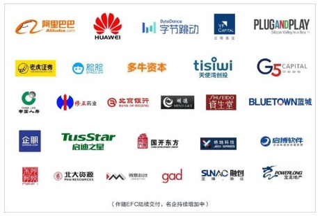 除了阿里巴巴外,眾多名企如字節(jié)跳動、老虎證券、臉臉科技、云鋒基金、G5 Capital、Plug&Play、多牛資本、天使灣創(chuàng)投、初橙、明德自動化、修正藥業(yè)、華為、北京銀行等,也均已進(jìn)駐EFC。