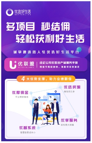 為幫助房地產經紀公司渡過難關,優選好生活平臺打造經紀公司優整合,儲備海量房產項目資源,利用AI賦能房地產行業推動快速結傭,助力經紀公司渡過危機,更有優厚傭金、優選房源、優智系統、優享服務四大優勢支撐,推動合作伙伴業績翻倍。