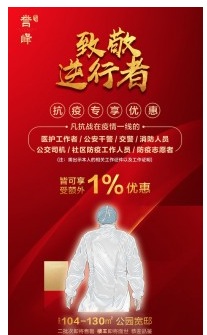 隆生國際建設(shè)集團有限公司開發(fā)的隆生·譽峰項目非常榮幸擁有一位馳援湖北醫(yī)護人員業(yè)主,為表達其對抗“疫”貢獻的感謝,奉上特別禮物——贈送五年物業(yè)費,以此迎接英雄平安歸來,共啟美好。