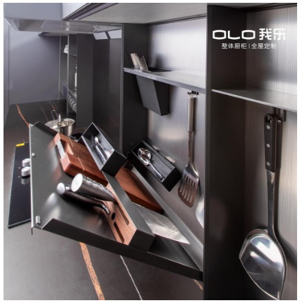 我樂第十代“智慧廚房”滿足了沈女士的所有想象:我樂設計師們在地柜與吊柜中間的墻面上首創了中柜區域,用于放置切刀、砧板、調味瓶、菜勺等物件。這項“神設計”可謂解決了廚房操作的大問題,以往沈女士只能自購掛鉤或簡易物架,如今直接在廚柜上標配了這些功能,讓備餐和烹飪的效率更高,沈女士能省出更多時間陪伴孩子們,幸福感倍升。