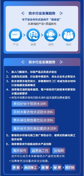 近幾年隨著新生消費群體的崛起,市場、消費習慣的變化也時刻逼迫著企業求變。新興消費者想要買的不只是產品,更是一個家。他們青睞更加方便快捷的購物體驗、看好一站式家居服務。因此,在新趨勢、新消費下,防水產業鏈上下游也積極協作起來,力求為消費者提供完美的服務閉環。