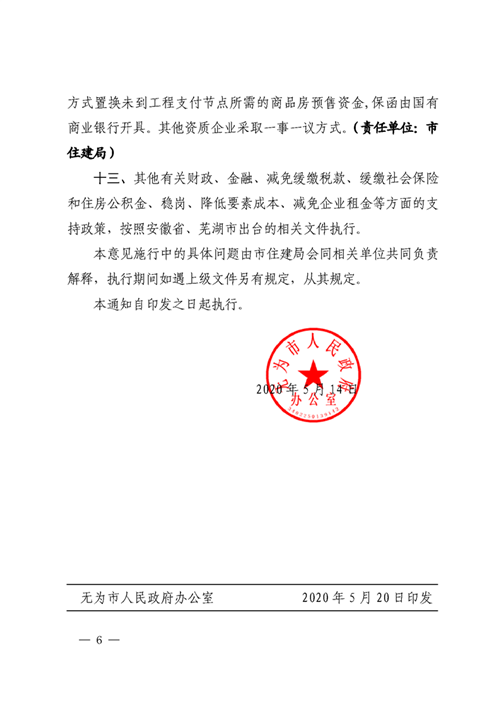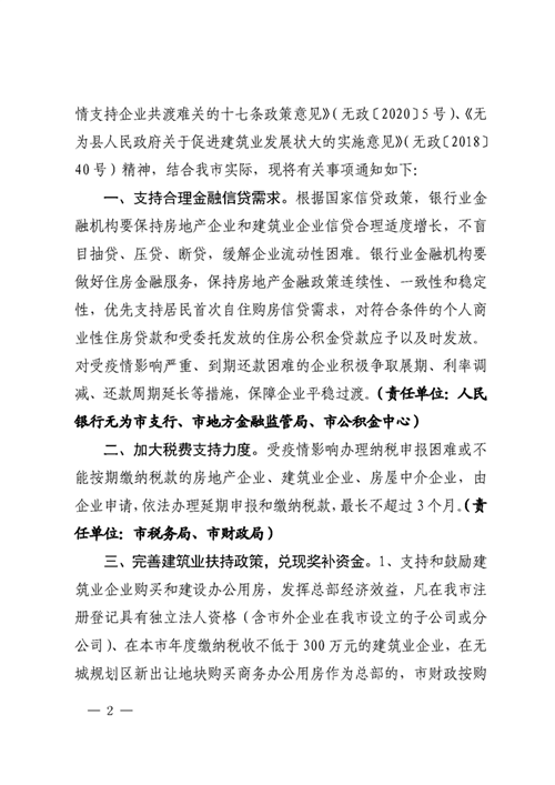 房訊網訊 據媒體報道,安徽省無為市日前印發了《關于應對新冠肺炎疫情防控促進建筑業和房地產業健康有序發展的通知》,取消該市2017年相關文件中2年限售的規定,同時調整商品住房價格備案政策,并完善推出建筑業扶持政策,兌現獎補資金等。