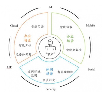 它涵蓋了多維度體系,目前最基礎(chǔ)的譬如設(shè)備層面的安防監(jiān)控系統(tǒng)、智能照明系統(tǒng)、智能訪客管理系統(tǒng)、能源管理系統(tǒng)、BIM運(yùn)維等;辦公層面上,移動(dòng)辦公系統(tǒng)、智能會(huì)議管理系統(tǒng)、高清視頻會(huì)議系統(tǒng)等相關(guān)系統(tǒng)。