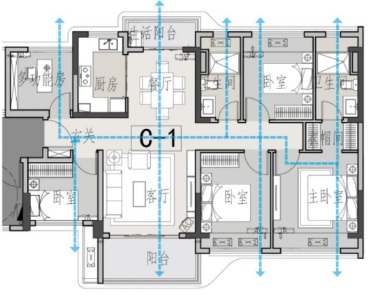 每個面積段均有利用生活陽臺打造南北對流的戶型,創造優越的通風條件,為住戶提供清新生活環境。采用南向戶型最大化的設計,在提供充足日照的同時也帶來良好的室內通風。南向開窗設計兼顧大小與窗地比,爭取更多日照條件。每個戶型均設雙衛,滿足居家隔離健康要求。