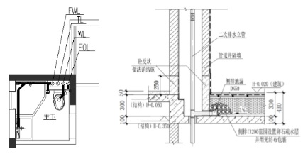 室內污廢分流/沉箱二次排水剖面圖示意圖