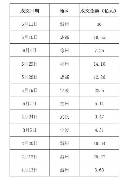 德信最近一次拿地是6月11日。在溫州濱江商務區一宗宅地的爭奪中,經過116輪競價,德信力壓包括融創、保利、中海、華潤在內的16家房企,溢價奪地。