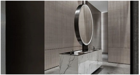 功能性空間如化妝間,設計在找尋光,點到為止的用色,現(xiàn)代干凈的秩序美,在輕盈中呈現(xiàn)精致、自由放松的氛圍。