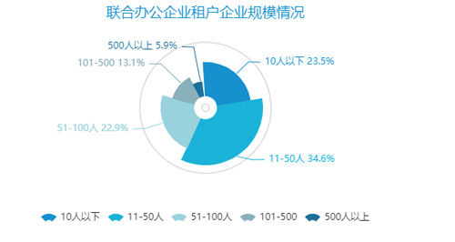 另一方面,從入駐聯合辦公的租戶構成來看,中小型企業屬群仍占據了重要位置。數據顯示,50人以下的小微形企業租戶占比達到58.1%,而近來越發被重視的大中型企業客戶屬群占比卻僅為19%。租戶的結構比重失衡使得聯合辦公企業在這次市場沖擊中所受到的影響更為明顯。