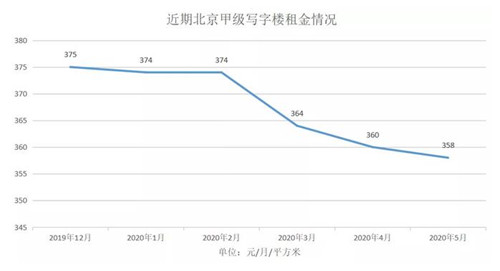 以北京甲級寫字樓為例,數據顯示,北京甲級寫字樓租金單價已經連續4月出現下跌,鑒于近期北京的疫情狀況,其租金繼續下跌的可能性很大。