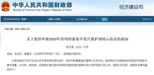 財政部官網5月28日消息,財政部辦公廳和住房城鄉建設部辦公廳近日聯合發布通知,組織申報2020年傳統村落集中連片保護利用示范市。據了解,中央財政將對每個示范地區給予1.5億元定額補助。