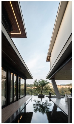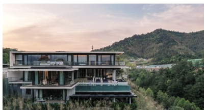 “未來山”的房子,沿著山脊而建,山勢漸次抬升。從自然的環境中生長出來一條竹林小徑,拾級而上,進入到鋪開在純粹大山大水間的空間,感受人與自然充分的交流,游離塵囂之外。簡約樸素而高雅華美,靜謐中隱藏著寧靜的氣場,足以感染尚未踏進此地的觀者。