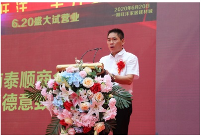 隨后,河北省浙江溫州商會會長黃建廳、河南泰順商會會長張德意、中聯萬洋有限公司總裁郭瑞新致賀詞,慶祝石家莊藁城旺洋商業廣場一期旺洋家居建材城試營業圓滿成功舉辦!他們都表示時刻關注著藁城旺洋商業廣場,愿做項目的堅強后盾。旺洋家居建材廣場一站式消費新理念,必將開啟藁城消費者追求高品質家居生活的新時代,必將為藁城家居建材市場的發展掀開嶄新的一頁。