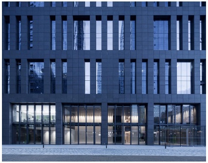 大廈南北立面的玻璃窗并不像普通寫字樓那種鏡面窗戶樣式,而是參考了中國古代碑林上篆刻書法的形象,加入現代化設計,設計出了我們現在所看到的這種獨特的樣子,南北立面上都是深深地凹進表面地開窗。