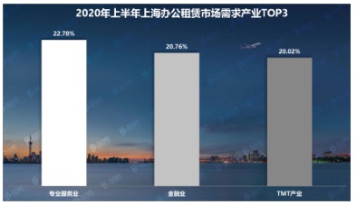 根據目前的經濟產業結構來看,專業服務業、金融業、TMT產業仍將在2020年的后半期繼續成為上海辦公租賃需求主力支柱。