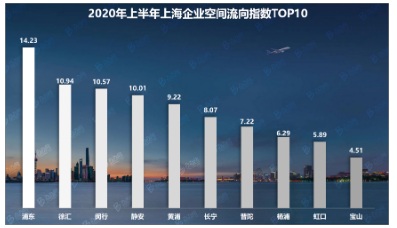 “2020年上半年上海企業空間流向指數”基本顯示了上半年的企業空間的流向趨勢,在新冠疫情得到有效控制后,上海多元化的經濟結構為企業辦公空間需求的復蘇奠定了優勢,加上推出了各項利好措施,核心CBD和新興商務區在經濟回暖之下的辦公需求呈現出相對的韌性,浦東、徐匯和閔行依然是企業集中流向的熱門區域。