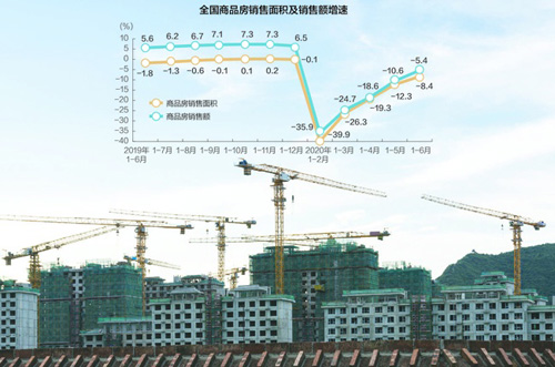 國(guó)家統(tǒng)計(jì)局?jǐn)?shù)據(jù)顯示,1~6月份,全國(guó)商品房銷售面積69404萬(wàn)平方米,同比下降8.4%,降幅比1~5月份收窄3.9個(gè)百分點(diǎn);商品房銷售額66895億元,下降5.4%,降幅比1~5月份收窄5.2個(gè)百分點(diǎn)。其中,住宅銷售面積下降7.6%,銷售額下降2.8%。
