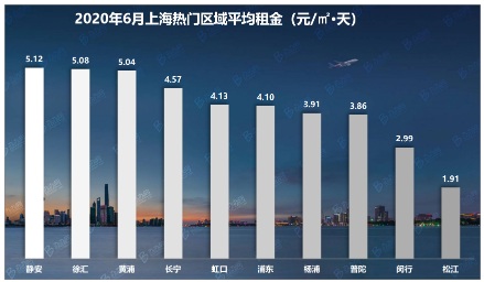 在后疫情時代,上海的辦公項目租賃市場依然承受著下行壓力,業主方的租金議價能力也明顯降低,同比去年6月,各區的租金均價都有不同幅度的下滑。其中,浦東、普陀和楊浦是上榜區域中租金下滑幅度最大的3個區域,而靜安的租金下滑幅度相對最小。同時,靜安也以5.12元/㎡·天的租金均價成為本月上榜區域中企業辦公空間成本最高的區域。