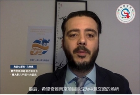 現(xiàn)場連線意大利新絲路促進會會長、意大利共產(chǎn)黨中央委員——弗朗西斯科·馬林焦,作為8萬多家意大利私營企業(yè)的代表,他表示;“奇雅南京項目作為與意大利新絲路促進會合作的起點,中意合作的載體之一,在時尚、美食、汽車、家居等相關(guān)意大利產(chǎn)業(yè)的引進方面做出了承諾,新絲路促進會作為一帶一路會員理事會單位,我們則責(zé)無旁貸的給予支持。”