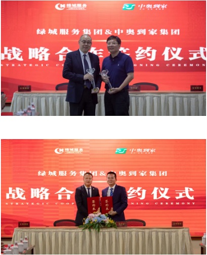 當天下午,中奧物業母公司中奧到家集團有限公司(以下簡稱中奧到家集團)與綠城服務集團的合作簽約儀式在杭州綠城服務集團總部成功舉行,現場中奧到家集團董事局主席劉建先生與綠城服務集團董事會主席李海榮女士派出雙方簽約代表中奧到家集團副總裁梁兵與綠城服務集團行政總裁吳志華正式簽訂合作協議。