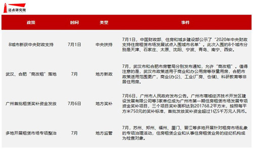本月多個城市住房租賃新獲中央財政支持、首宗集體土地長租公寓項目入市、多品類長租公寓品牌新項目迎客、租金與成交量持續回暖。而且7月多地政策密集出臺,天津、石家莊、太原、沈陽、寧波、青島、南寧和西安成為中央財政支持住房租賃市場發展的試點城市;武漢與合肥落地“商改租”政策;廣州發放首筆1.5億元人民幣的租賃獎補金;蘇州、鄭州、福州、廈門等多地開展針對租房亂象的專項治理活動,對此,品牌公寓與中介機構更應該堅守底線、做好服務。
