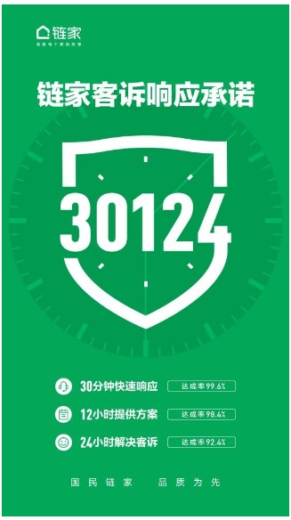 據介紹,“30124”是鏈家于2018年11月正式推出的客訴響應承諾,以解決客戶投訴處理時效,提升客戶的服務滿意度。該承諾對鏈家的內部客服系統提出了嚴格的任務指標,即要求在客戶投訴后30分鐘內予以響應,在12小時內給出解決方案,24小時內實現90%以上的客訴結案率。從鏈家公布的數據可見,“30124”承諾推出后,經過一年多時間的努力,整體客訴處理速度和滿意度均得到了大幅提升。