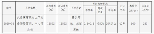 今年7月27日,嘉善縣自然資源和規劃局發布的出讓公告顯示,經嘉善縣人民政府批準,嘉善縣大云鎮曹家村股份經濟合作社決定以掛牌方式出讓1幅地塊的集體經營性建設用地使用權。該地塊位于大云鎮曹家村上下村云海路西側、中心河北側,出讓面積15592平方米,土地用途為餐飲用地、旅館用地,起始價為900元/平方米,使用權出讓年限為40年。