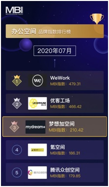 8月26日,邁點研究院發布最新一期《辦公空間品牌發展報告》。報告指出,夢想加穩居辦公空間品牌影響力榜單前三,其中,搜索指數單維度排名為榜單首位。