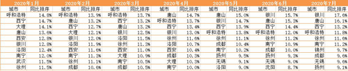 全國(guó)70城新房?jī)r(jià)格環(huán)比漲幅排名前十城市(數(shù)據(jù)來(lái)源:國(guó)家統(tǒng)計(jì)局)