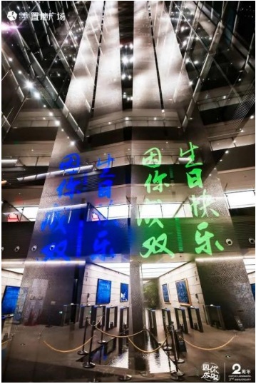 60米高的“映象”飛瀑,是中糧·置地廣場的視覺名片之一,周年慶的首場活動即以水幕為畫卷,運用專業(yè)投影設備,落筆書寫誠摯的祝福話語,隨著水紋的流動賦予文字一種生命的律動。大廈工作人員為過往人們送上伴手禮,在工作日的早晨喚醒一天的活力。