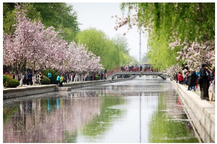 北京書院基址由多座城市公園簇擁,是內城人均密度最低、人均綠地率最高的地方。家中正好俯瞰北京最大的帶狀公園:元大都遺址公園。公園圍繞著古城墻而建,郁郁蔥蔥、暗香浮動,間或草毯匍匐,間或曲水蜿蜒,古韻幽香,美不勝收。而北京書院坐落公園岸,就典藏了整座公園里最華美的段落:海棠花溪。每年一屆的海棠花節,成了這里頗為壯觀的盛況,與香山植物園的桃花節、玉淵潭的櫻花節并稱“北京春天的三大花節”。每天在這里肆意徜徉,吐故納新,可以說這座元大都公園,已成為北京書院業主的“私家后花園”了。
