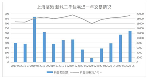 從臨港新城二手房成交來看,整體態勢和新房保持一致,2019年銷量升至頂峰,2020年2月銷量探底,但二手市場二季度的成交量整體要好于一手房,從銷量來看已經達到并超過2020年四季度相應水平。同時值得關注的是,二手房從二季度開始已現抬頭跡象。