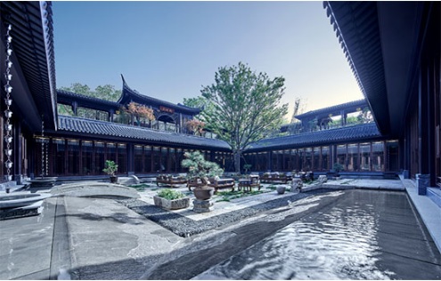 四水歸堂以傳統的“間”為基本單元,房屋開間多為奇數,每間面闊3至4米,進深五檁到九檁,每檁1至1.5米,各間以廊相連,圍合成封閉式院落。因為圍合,中式建筑才有了向心的力量。合肥建發·雍龍府,擁有建發房產首個實景展示的四水歸堂。晴時陽光自天井瀉入堂前,如同“灑金”;雨時雨水從四面落入天井,恍若“流銀”,寓意水聚天心、天人合一。