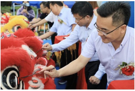 祥獅起舞,在振奮人心的鼓聲中,吳川市人民政府副市長梁韌才先生、吳川市文化廣電旅游體育局局長郭冠平先生、鼎龍集團執行董事兼執行總裁李斌先生、鼎龍集團地產集團常務副總裁葉方舟先生、鼎龍集團地產集團副總裁朱建波先生、鼎龍集團戰略發展中心副總經理吳俊宏先生上臺為祥獅點睛,獅子點睛繁榮富貴,金獅開光威武赫赫。