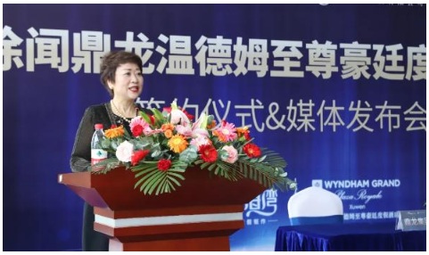 大中華酒店(香港)有限公司常務董事兼營運總裁楊惠玲女士發表精彩致辭,對鼎龍集團深耕"大文旅+"、"大康養+"的產業模式,在中國成功打造多個文旅綜合體,致力打造多個世界級旅游目的地表示高度認可。