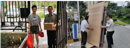 “讓每個角落都充滿世茂服務的愛”,秩序服務力的提升至關重要。門崗、巡邏崗早晚交接班短訓已成規范,更好地銜接一天服務工作。除了嚴格盤查外來人員、裝修人員,夜間武裝巡邏工作也接軌世茂服務秩序服務標準,一天至少2次夜間巡邏,并為夜間執勤人員配備反光衣、佩戴肩閃燈等裝備。暖心服務同步啟動,門崗、巡邏崗為業主提供“搭把手”服務,幫忙提重物、搬運大件家具等。