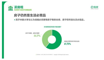 鏈家日前發(fā)布的《2020大學(xué)生職住觀報(bào)告》(以下簡(jiǎn)稱“報(bào)告”)顯示,高于半數(shù)的大學(xué)生認(rèn)為結(jié)婚必須要有房子才有安全感,房子仍然是生活必需品。