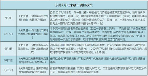 因為5月第四周的二手房價格環比漲幅首次超過深圳,并位居全國第一,東莞樓市瞬間成為市場關注的焦點。但緊接著,火熱的樓市就催生了一系列的政策調控,7月2日開始,東莞市先后從加快供應、加強銷售價格指導、延長轉讓年限、打擊兜售“房源指標”等方面為樓市降溫。