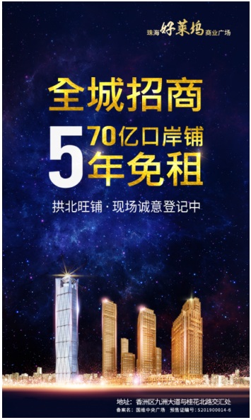 你開店,我免租,國維集團·好萊塢商業廣場日前正在面向廣大商家品牌進行招商,拱北臨街旺鋪,5年超長免租期,搶先進駐,機不可失。