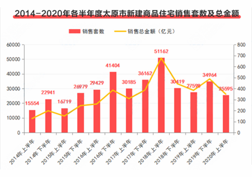 另據樓查查統計數據顯示,2020年上半年太原市新建住宅出現了供應面積、成交面積、銷售套數均同比下降情況。2020年上半年太原市新建商品住宅供應面積227.2萬平方米,環比下降61%,同比下降41%;成交面積312.4萬平方米,環比下降28%,同比下降7%。