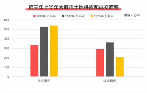 太原商品房銷售市場的低迷反映在土地市場是成交縮水。據樓查查統計數據顯示,近3年,太原市土地市場供應量呈現逐步增加態勢。2020年上半年太原市土地供應84宗,面積536.6萬平方米,較去年同期增長2%;但土地成交46宗,面積207萬平方米,較去年同期減少43%。