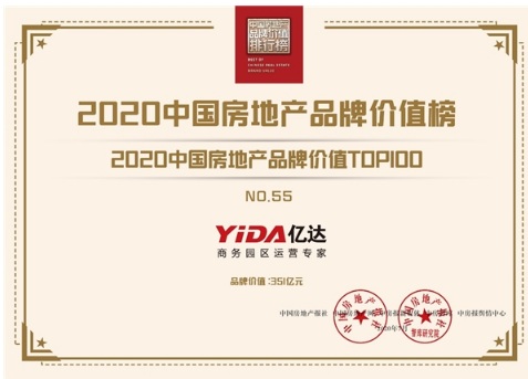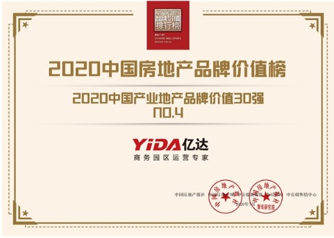 大會發布了2020中國房地產品牌價值榜,億達中國憑借22年產城融合發展經驗及強勁的品牌影響力,榮膺2020中國房地產品牌價值TOP100,位列55;2020中國產業地產品牌價值TOP30,位列第4。