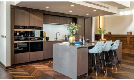 蒙特安維旗下力作漢普斯泰德莊園(Hampstead Manor)在住房細節上力求精湛,莊園內的Skeel Library別墅在翻修時,采用現代工藝精心修護窗戶、扶手等細節,同時提升實用性;天然大理石衛浴和意大利獨家定制的吊燈,都充分凸顯品質生活細節。廚房內組合烤箱、蒸汽烤箱、保溫抽屜、咖啡機等均來自"家電界的愛馬仕"美諾(Miele)品牌,讓住戶感受到高品質家裝家電帶來的尊貴舒適體驗。